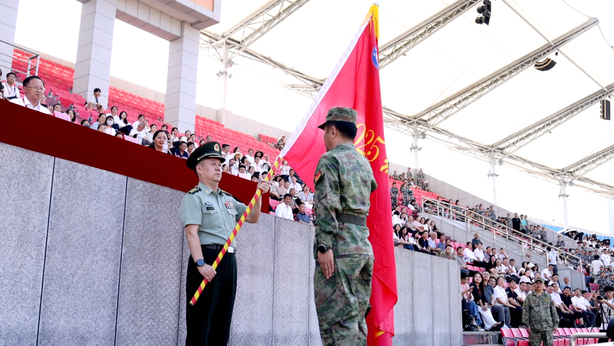 易长运代表吉首军分区向军训团授旗。谢绍猛宣布军训正式开始。